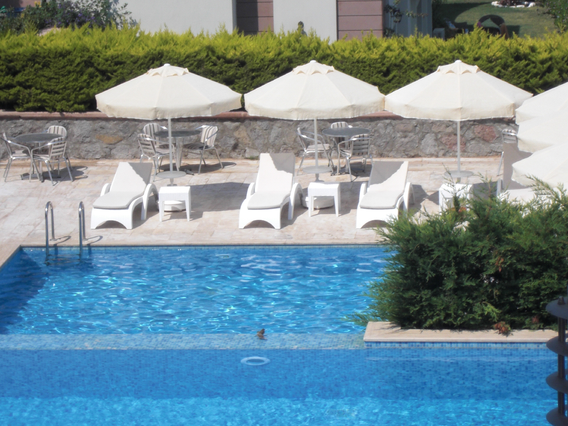 Am hauseigenen Pool kann man sich gut entspannen und sonnen.Die Ferienanlage liegt in einer sehr ruhigen Lage, trotzdem ist alles gut erreichbar.