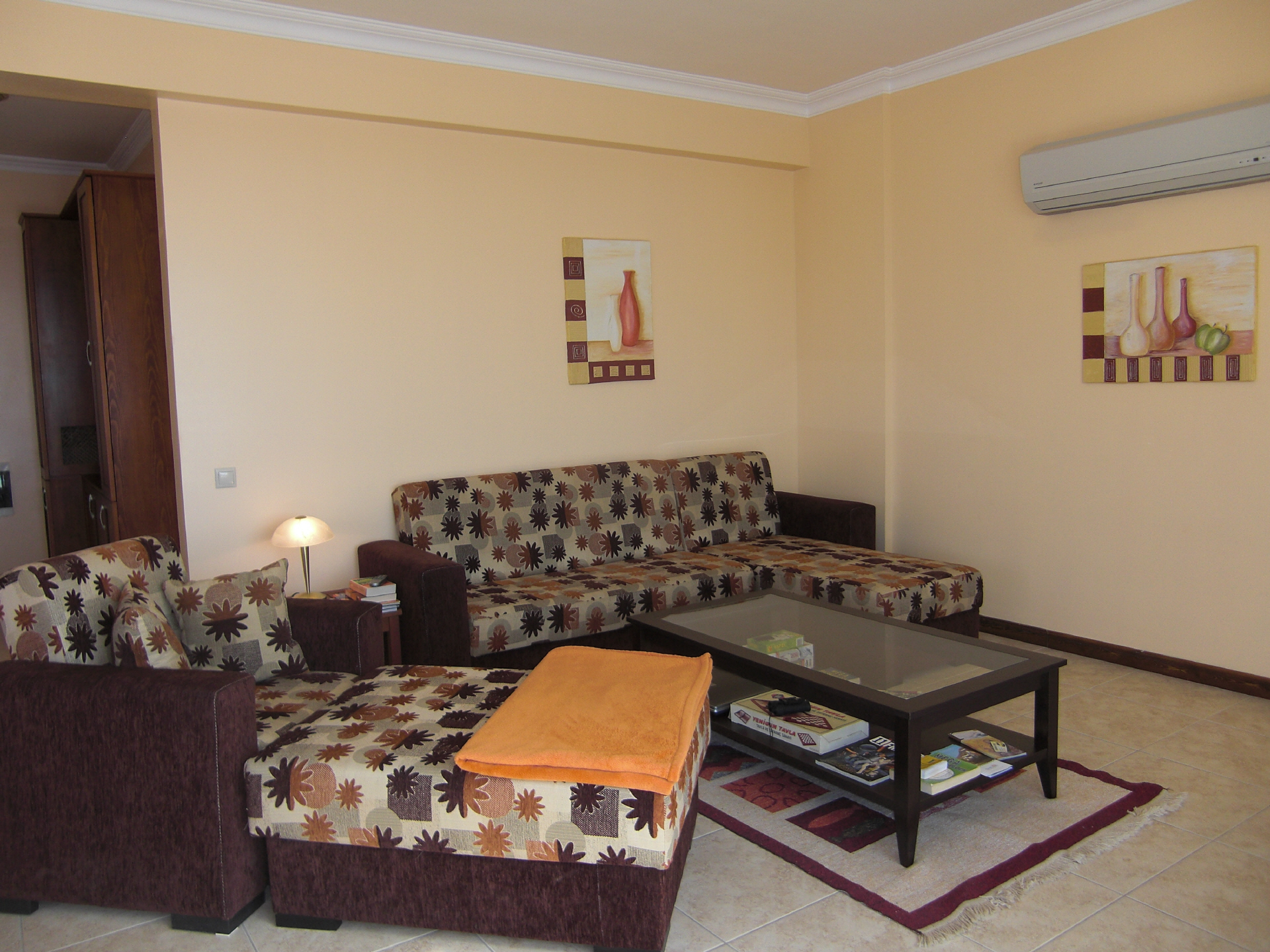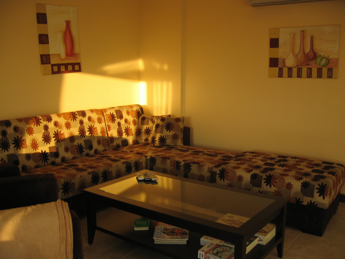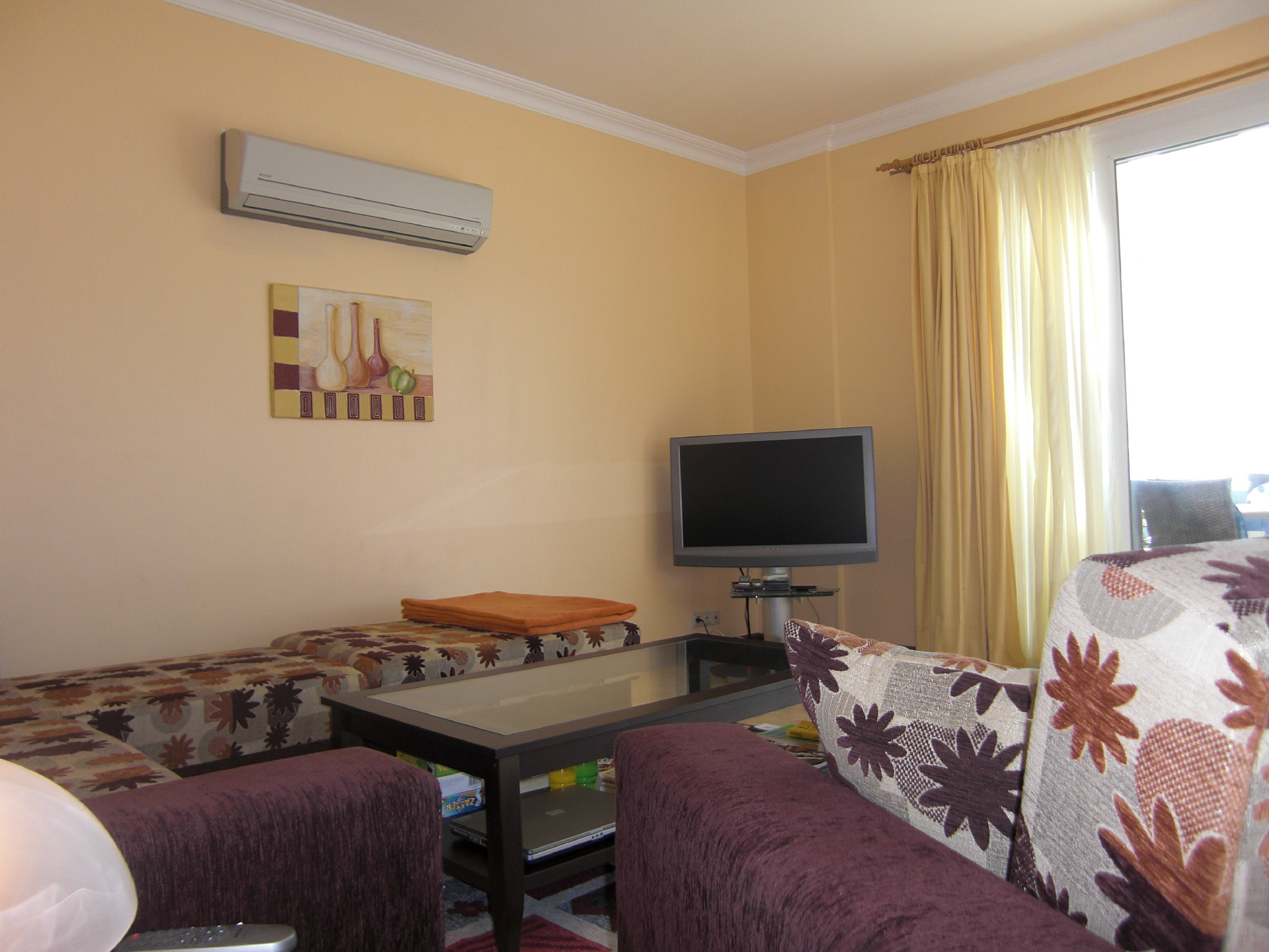 Wohnzimmer, Esszimmer und Küche verfügen über eine Fläche von 60 qm. Der Balkon ist verglast, ausgestattet mit Tisch und 6 Stühlen. Im Wohnzimmer finden Sie ein TV-Gerät, deutsche Bücher und Unterhaltungsspiele. Die Küche ist mit Gasherd, Abzugshaube, Backofen mit Grill ausgestattet. Ein Geschirrspüler, Kühlschrank und Gefrierschrank sind ebenfalls vorhanden. Eine Kaffeemaschine, Toaster, Wasserkocher, Mixer und alle nötigen Küchenutensilien stehen für Sie bereit.
