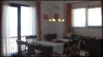 Wohnzimmer, Esszimmer und Küche verfügen über eine Fläche von 120qm. Durch eine Schiebetür gelangt man in den verglasten Balkonbereich mit Teakholztisch und 8 Stühlen. |